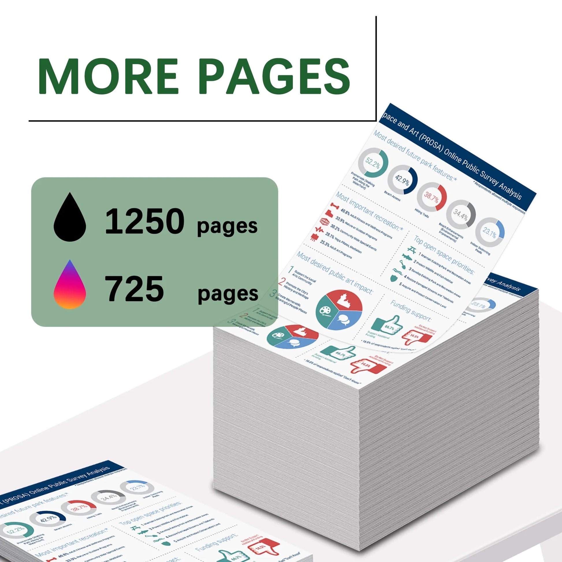 1250 pages for per black cartridge / 725 pages for per color cartridge at 5% coverage A4 letter