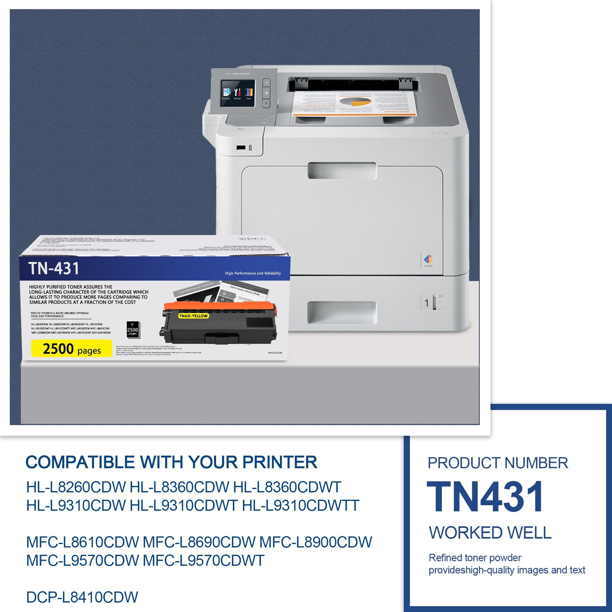 Up to 2,500 Pages for TN431 Yellow Toner Cartridges High Page Yield(Letter/A4 at 5% Coverage)<br /><br />